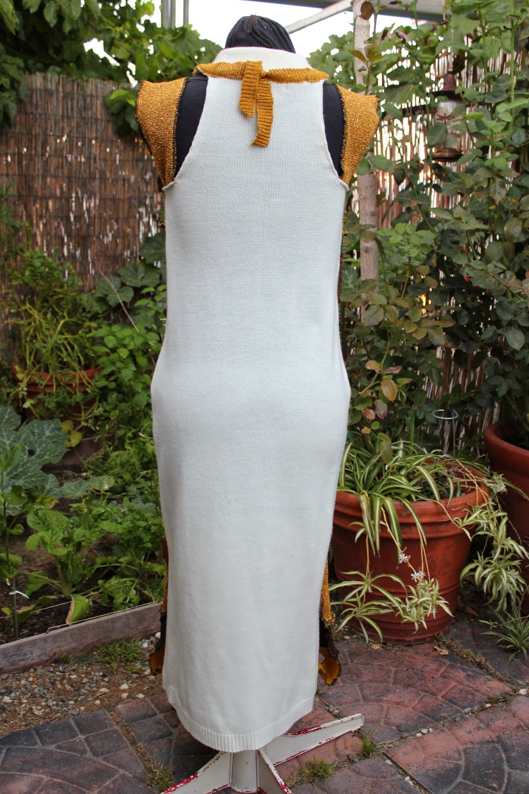 The white sweater dress had a deep raglan sleeve that I removed. I shaped the bodice to resemble the Project Runway look.