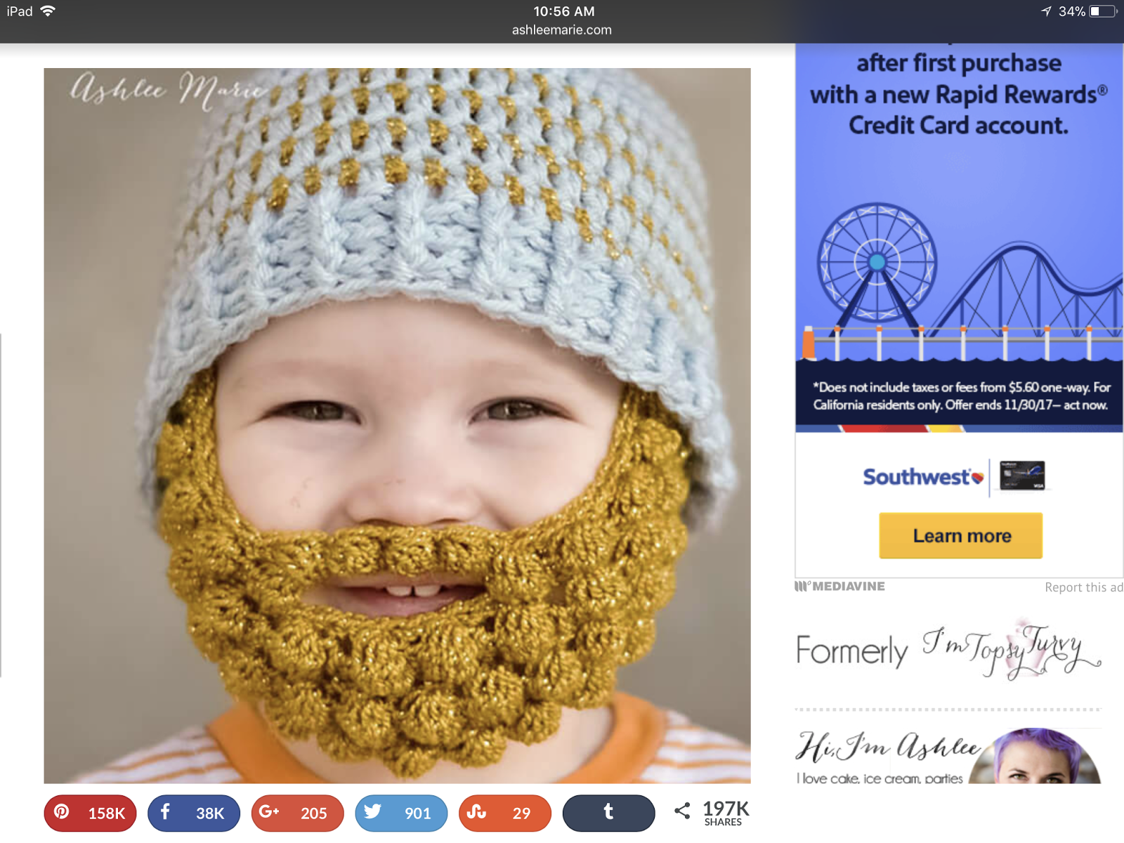 I was in charge of a costume for Isabelle’s little brother (7 months old). This beanie pattern just cracks me up, so Caleb was a lumber jack.
