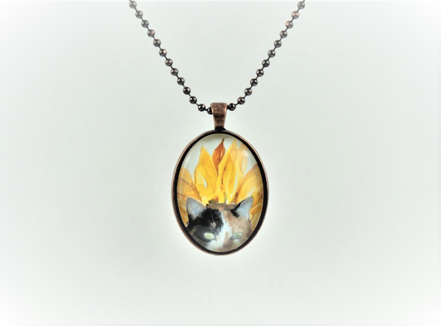 DeleteLove the sunflower necklace, especially that you went for copper, I love copper, and the beaded necklace compliments the piece. Your cat pieces are adorable too