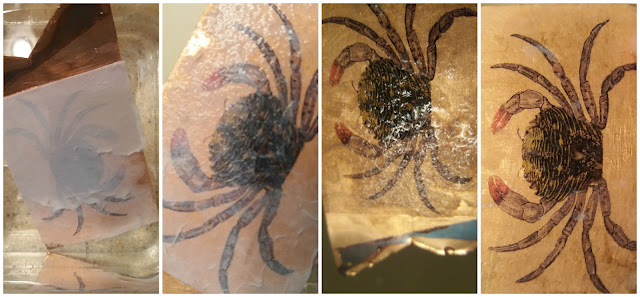 I was happy as a crab err ... clam to see that the color and all the detail came out just the way it should! So the guy says if there's still paper left after the initial rub, just rub some more under water and it should all go away. Looks good wet doesn't it? (4th pic) My heart was a-fluttering!!