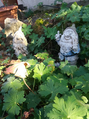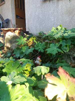 She immediately started pruning and cleaning and in the process, was pleasantly surprised by visits from furtive gnomes. She was able to photograph some of them unawares ....