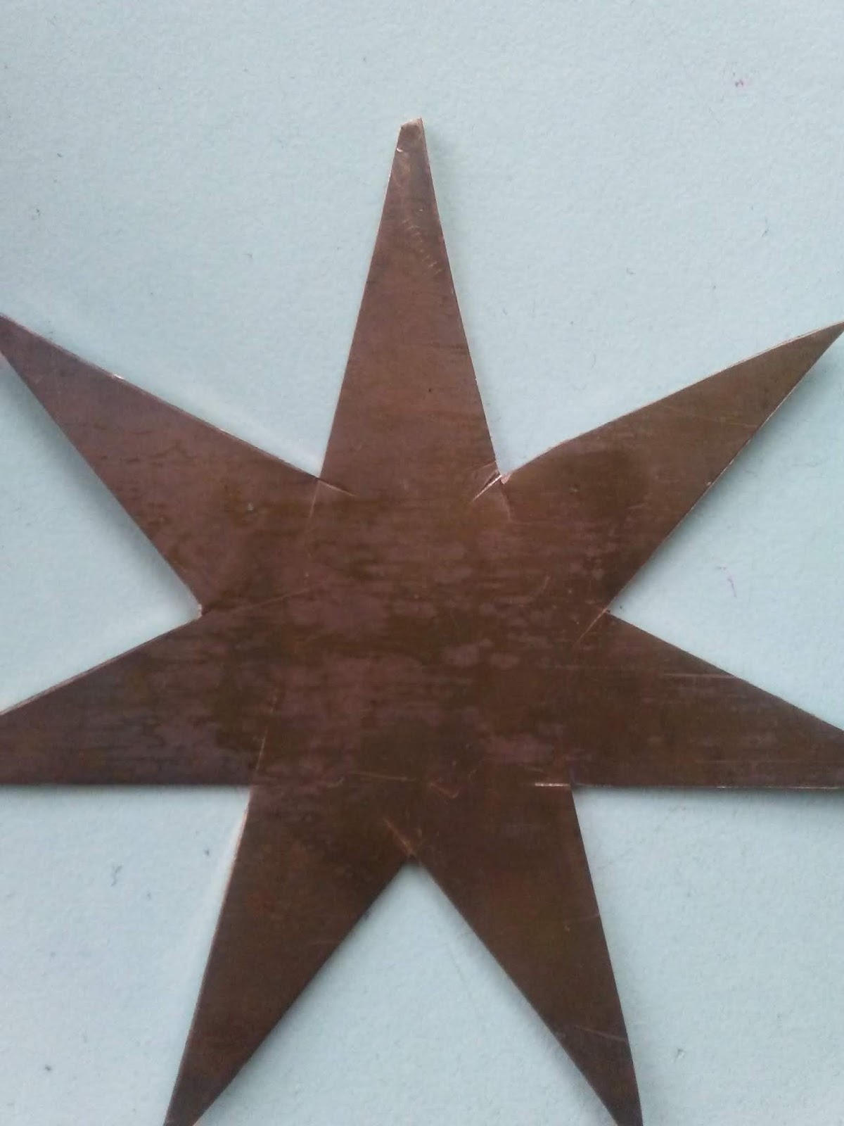 Now, about my original idea and why I couldn't continue in my excited frenzy to actually saw the whole thing with my jeweler's saw. Since I started late, I decided to skip sawing the outside of the star and use my heavy duty sheet cutters since this is 18 gauge copper. And that, my lovelies, was my downfall!
