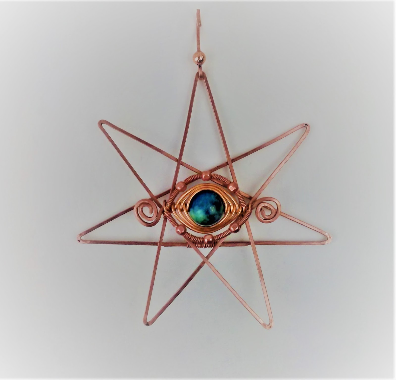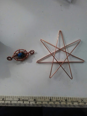 I tried doing one of these Faery Stars several months ago, using some smaller gauge, plated wire. I now always try out a new idea with cheaper wire to see how it turns out. Yes, an Auld Cat can be taught new ways .. eventually! It just ended up too messy and I left it hanging on my worktable to be reminded that I wanted to try try again. Yes, I'm stubborn and an eternal optimist.