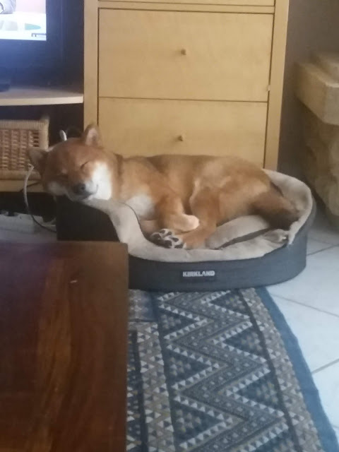 Fast forward to 2017, daughter & future son-in-law did get a puppy, when she wasn't living at home. A Shiba Inu they named Alphonse. He was 1.5 years old by the time I met him. And they all lived in our house (temporarily). Cannelle was not happy, but I won't delve into that part.