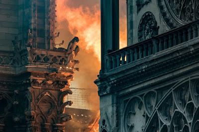 DeleteA beautiful tribute to the destroyed piece of world, not just French, history! The grieving Gargoyles with the fire in the background look brought me goosebumps!