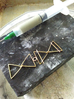 DeleteI ran the torch under the screen to heat the ring since it's heavier and didn't want to melt the thinner metal cut outs. Also, I didn't want to waste my silver solder by touching the wire to the ring. I do have some copper brazing rods so I might try that with one of those! I really think I need to flatten and file that side a little more ... Ho Hum, I will keep at it and post my success story on Ig ...