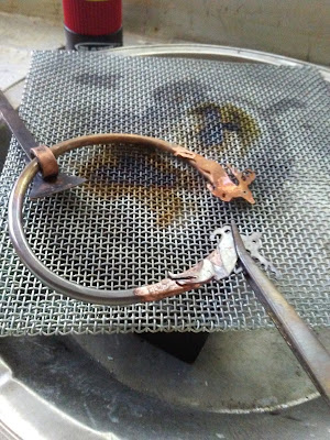 DeleteI have been into brooches lately too. I started to make one with the pin attached only to realise that it only works for penannular brooches. Stupid me! But you have done a fantastic job with your brooch. The leaping stags look amazing. Why don't you try soldering the ring to the stag and not the other way around? you can use rod solder and run it along the sides of your copper rod. But cleanup will be messy and you might have to oxidise the whole thing .